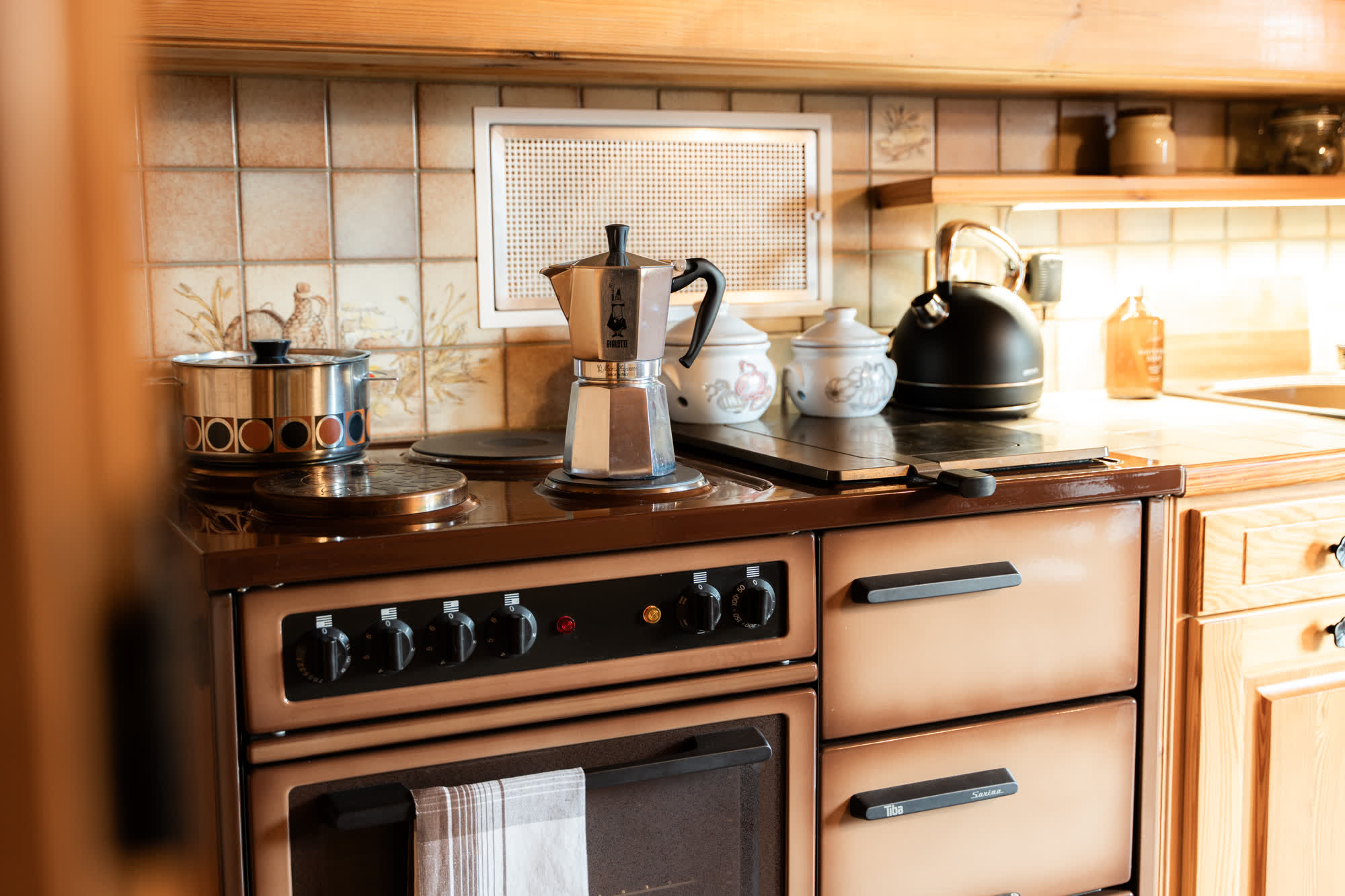 - Fully equipped kitchen (stovetop, oven, refrigerator, freezer, no dishwasher) with dishes and utensils included; raclette set, fondue set, Nespresso coffee machine, kettle. Available for your use: basic seasonings, olive oil, balsamic vinegar, coffee, tea, sugar.