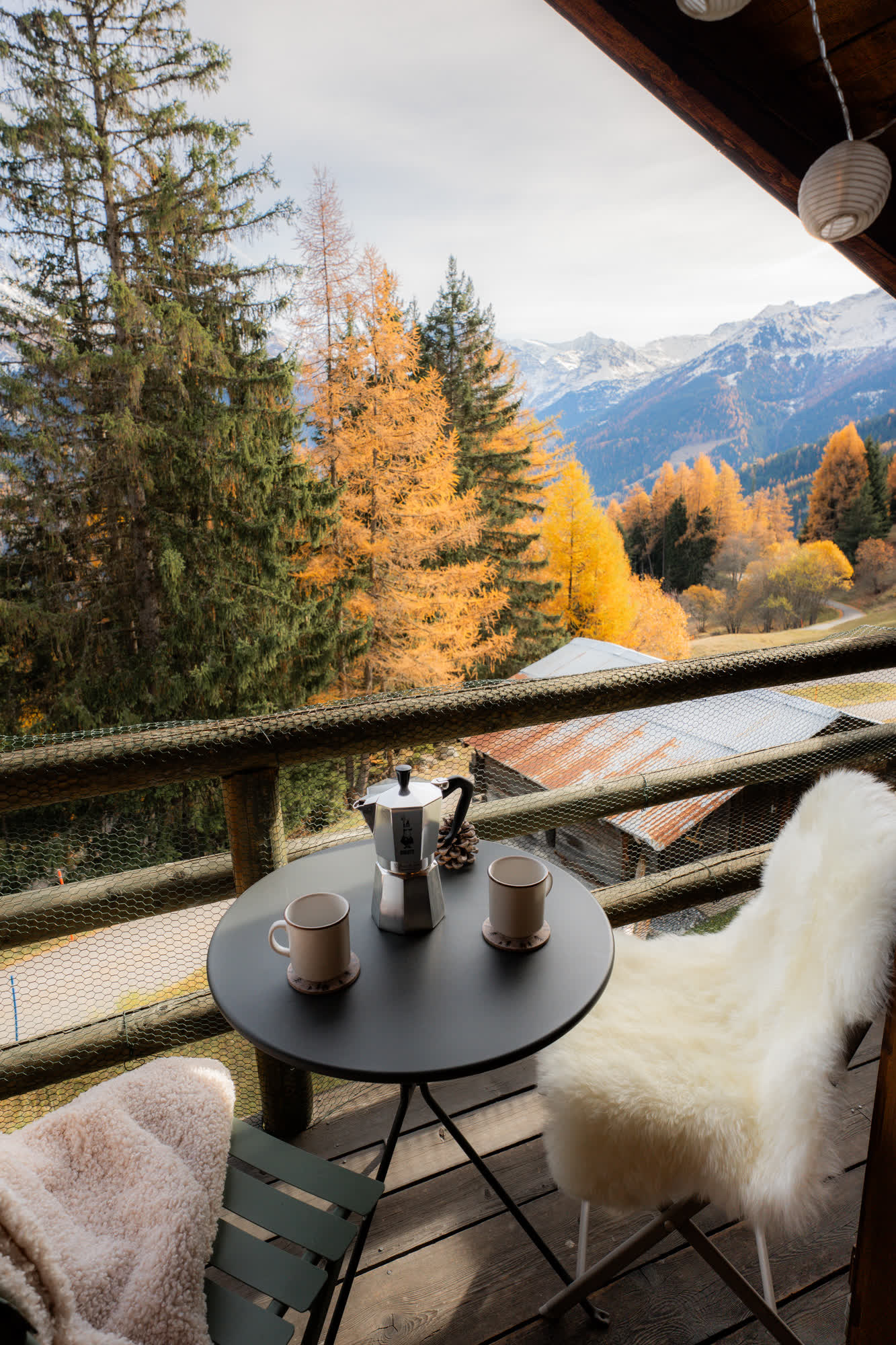 Sur le balcon, la vue s’ouvre sur les sommets, tandis qu’au pied du chalet s’étendent les pistes de ski et les sentiers. Ici, chaque instant invite à ralentir, à respirer et à vivre le moment présent.